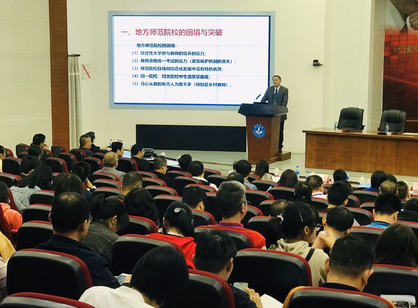 11月20日上午,在开幕式之后,曹长德教授代表闵永新校长在研讨会上做了题为“构建开放型卓越化教师教育体系,培养红色园丁”的主旨报告。报告主要包括四个方面的内容:一是地方师范院校的困境与突破;二是伟德bv1946教师教育发展的历程;三是伟德bv1946教师教育开放型卓越化教师教育体系的构建,主要从“夯实师德养成体系”,“优化学科课程体系”“锻造实践训练体系”,“构建协同培养体系”,“健全保障服务体系”等五个方面进行构建;四是伟德bv1946“红色园丁”项目的内容与实施,是从建立“大别山革命老区高校联盟”,开发红色教育资源,开展“红色铸魂”“红色筑梦”主题教育活动和“对大别山革命老区中小学实施持续帮扶活动”三个方面开展的。该报告得到参会代表的高度评价,被誉为“安庆师大经验”。
