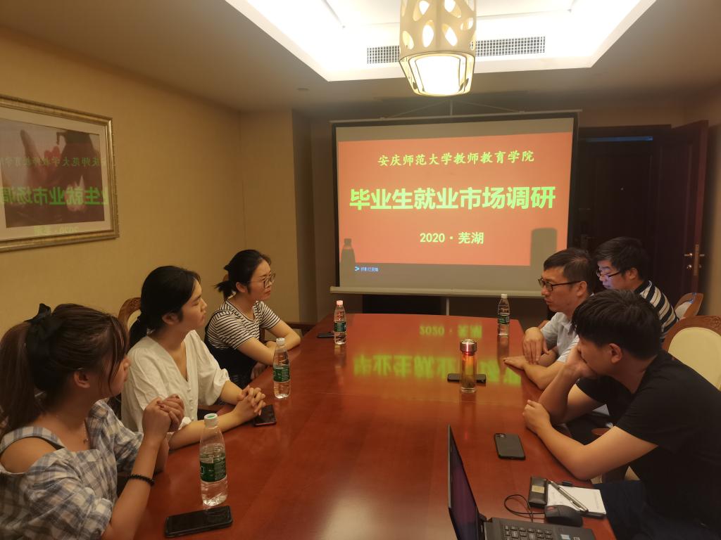 同时,为全面了解毕业生的就业状况,走访组于8月15日晚在芜湖市组织开展了“毕业生就业市场调研会”。到访的各个校友代表畅所欲言,纷纷表示感谢母校的培养,对加强师范生信息技术教育和提高艺术素养等提出了合理的建议。许世平代表学院班子祝贺校友们在各自工作岗位上取得的可喜业绩,感谢校友们对学院发展提出的宝贵建议,并就区域校友资源的开发与合作进行了展望。