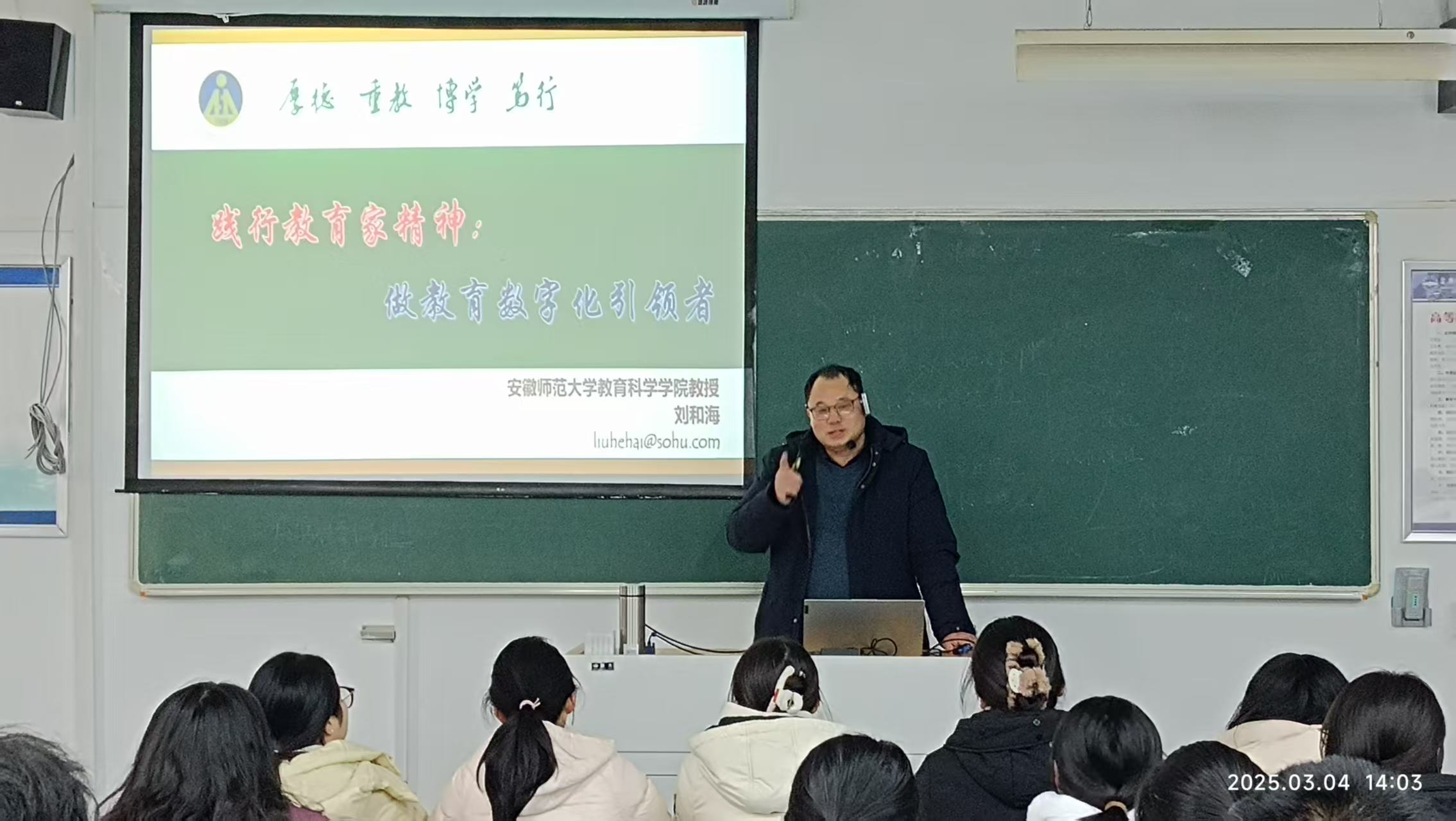 2025年3月4日,安徽师范大学刘和海教授应邀做客红色园丁大讲坛,作题为“践行教育家精神:做教育数字化引领者”学术报告。伟德源自英国始于1946部分专任教师、教育技术学专业本科生、研究生约90人参加报告会,会议由韦伟老师主持。