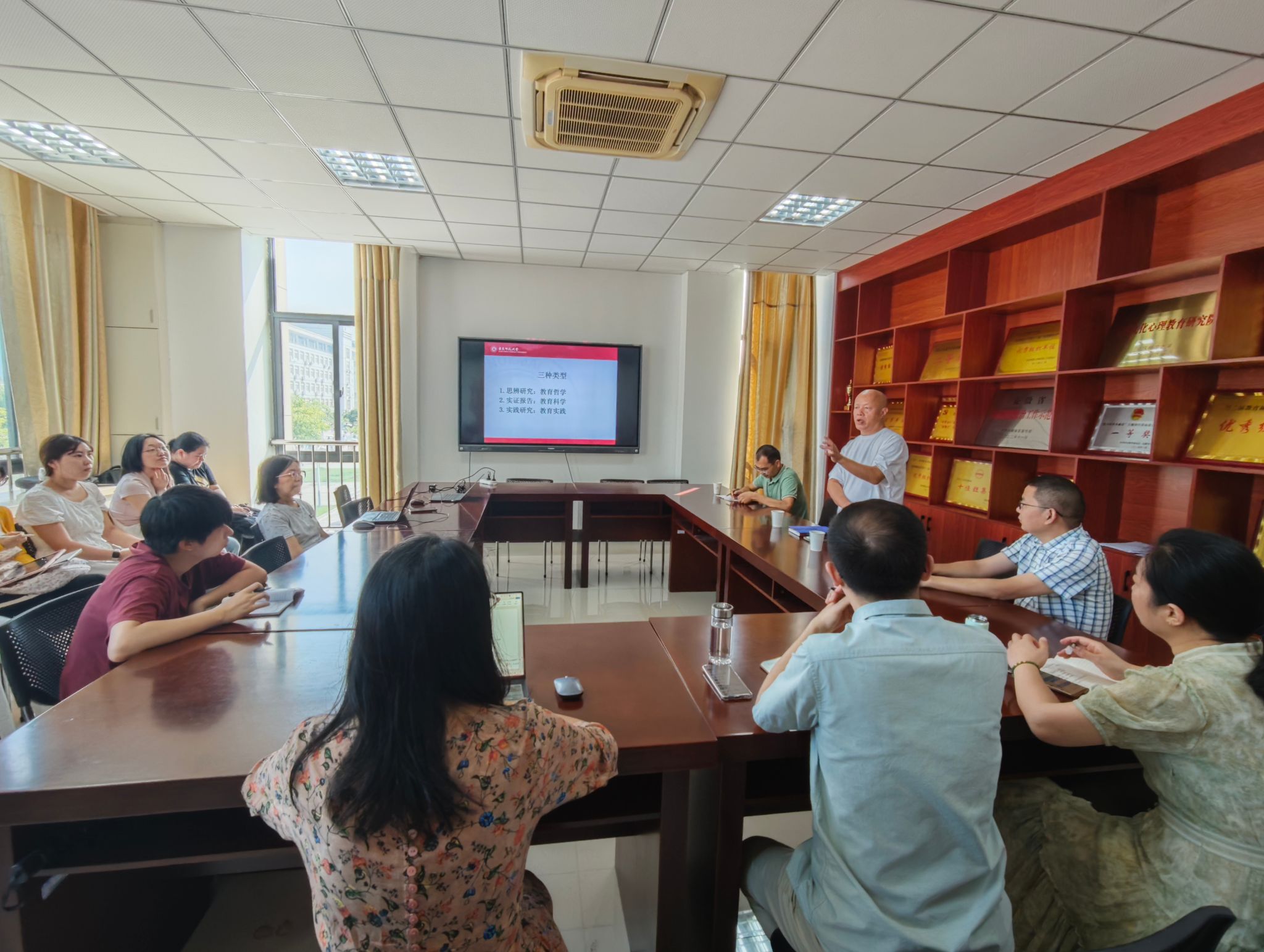 9月19日上午,华东师范大学课程与教学研究所刘良华教授应邀做客红色园丁大讲坛,作题为“教育哲学与实证研究”学术报告。报告会由学院党委书记何孔蛟主持,副院长陈效飞、我院部分教师及相关专业研究生参加报告会。