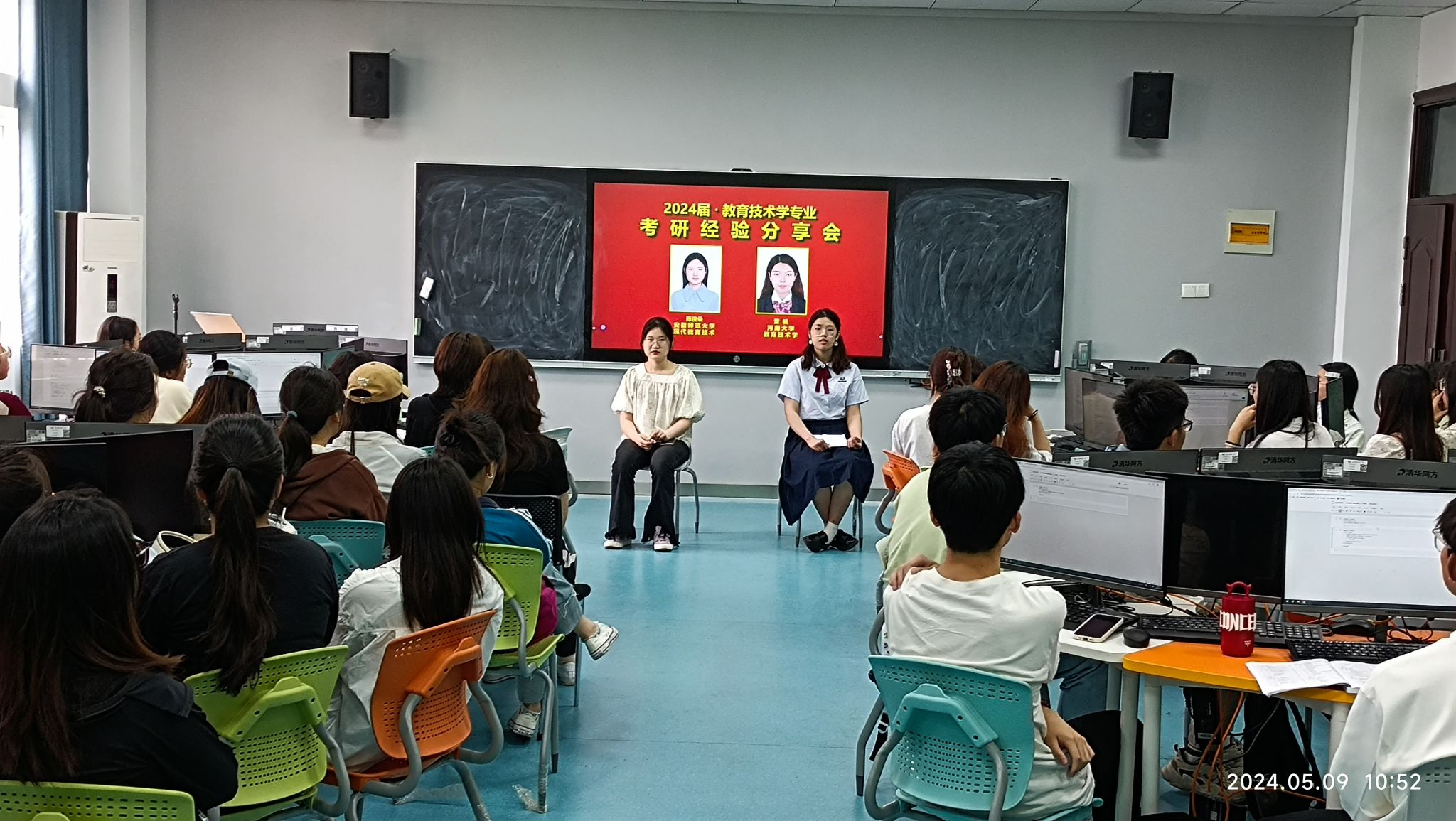 2024年5月9日,教育技术系在D206教室召开2024届考研经验交流会暨2025届考研工作推进会。2024届考研拟录取学生代表,以及2021级、2022级备考学生代表参加活动。会议由教育技术系主任韦伟主持。