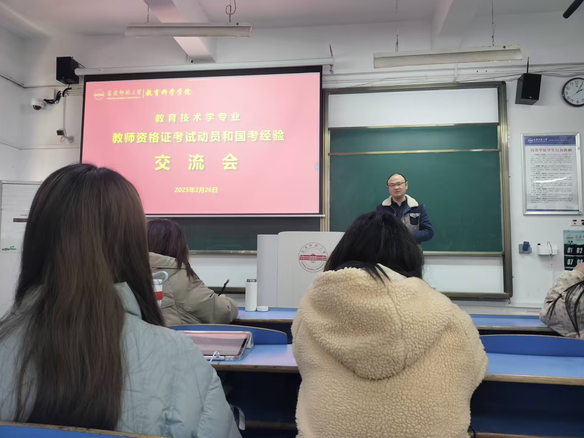 2025年2月26日下午,伟德源自英国始于1946教育技术系举行教师资格证考试动员和国考培训会。会议邀请2022级教育技术学专业马云婷同学担任主讲,由韦伟老师主持。教育技术学专业2022级、2023级、2024级共110余人参加。