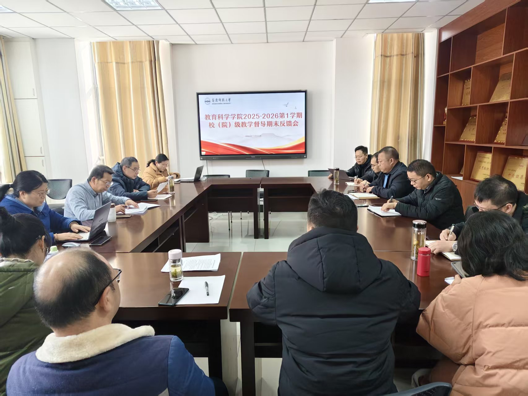 12月31日上午,在J楼202会议室召开2025-2026学年第一学期教学督导反馈会。校院两级教学督导张启树、雒有谋、陈修梅,学院党委书记何孔蛟、院长吴云助及班子成员、各教研室负责人、相关辅导员等参加会议,会议由吴云助院长主持。