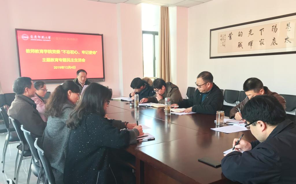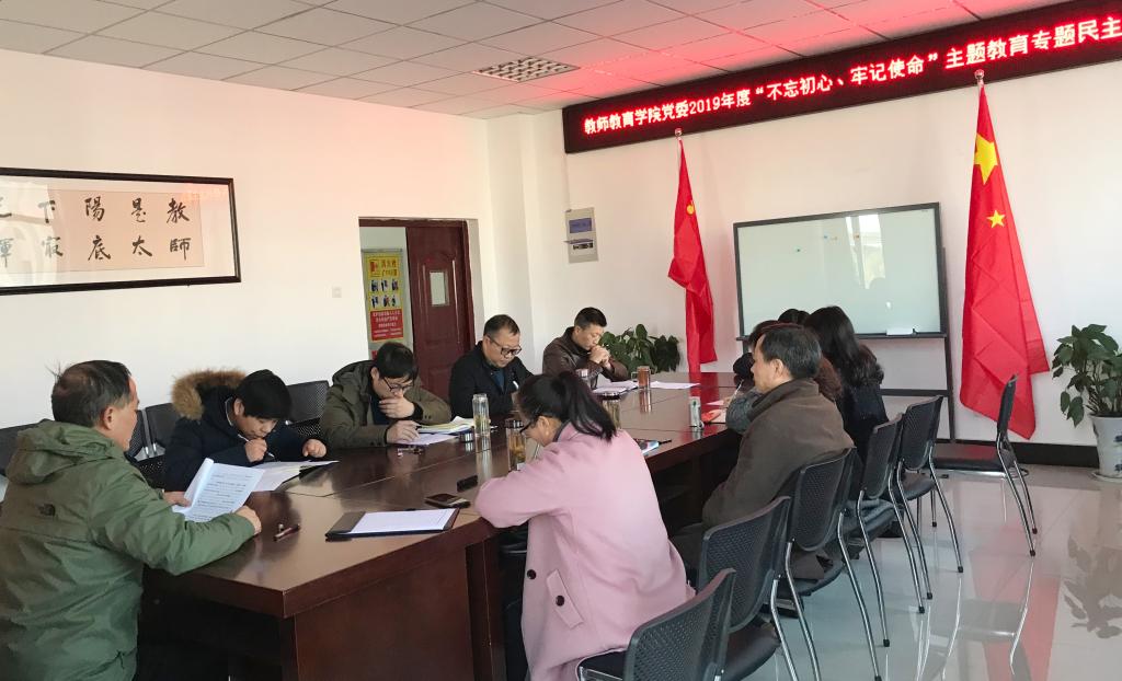 12月4日下午,学院党委在J202召开“不忘初心、牢记使命”主题教育专题民主生活会。党委书记曹长德主持会议,全体党委委员参加,校督导组成员到会指导。