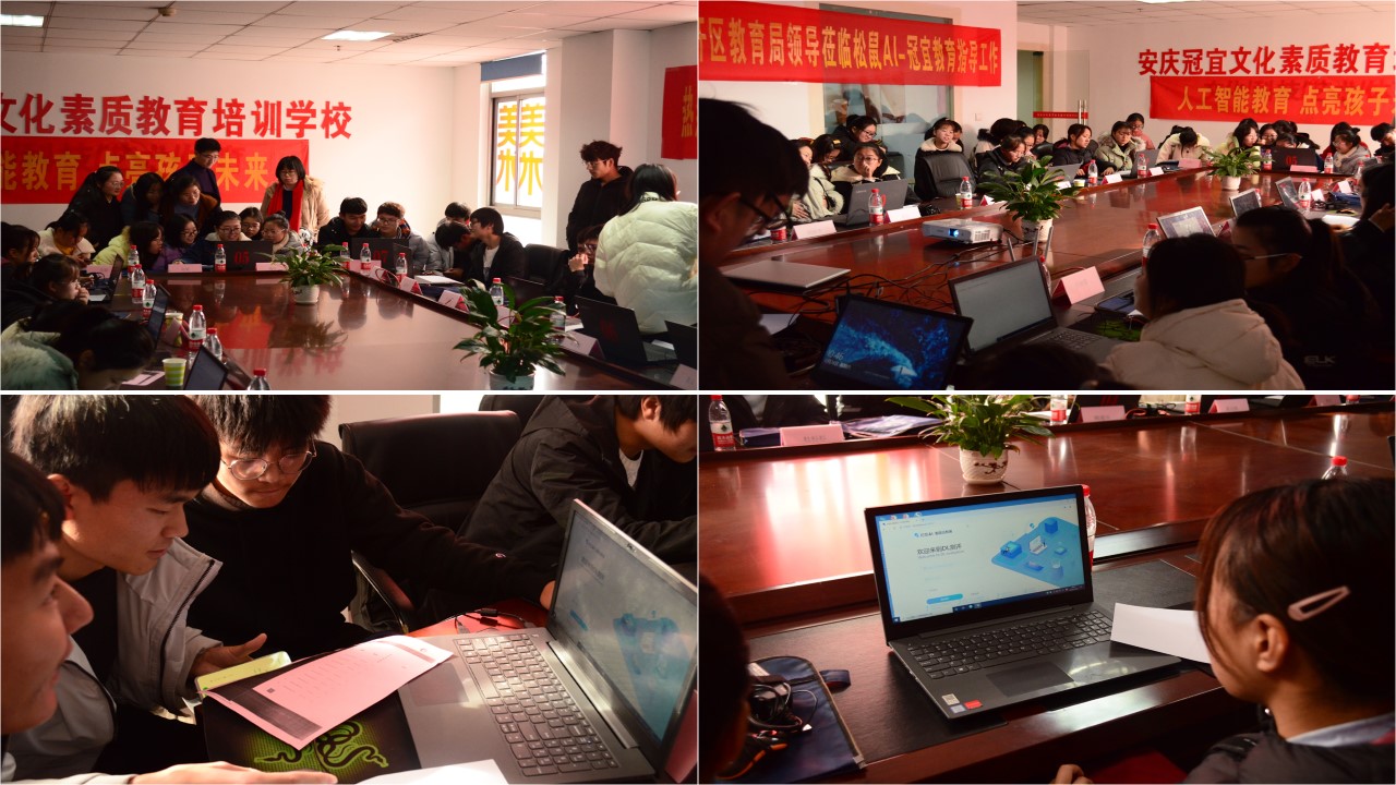 为更好地了解“智适应”教育在中小学学科教学中的应用,促进高校教育技术学专业的人才培养,同时加强与地方教育主管部门、学校的交流与合作,12月28日上午,教育技术学专业联合冠宜文化素质教育培训学校举行“智适应教育”观摩研讨会。我院院长吴云助、专业负责人韩建华,经开区教育局局长阮星星、主任王贵忠,冠宜教育学校校长喻红,十六中校长助理胡章平、团委书记余洋,中兴小学副校长戴婷、教师刘桂芳,松鼠AI安徽省运营中心总监金继善,以及教育技术学专业全体师生参加了研讨会。