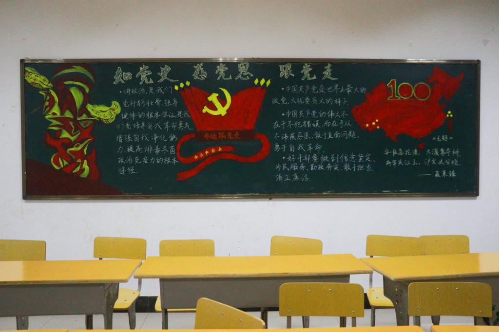 原来这是教师教育学院最近举办的“学党史,悟初心,承精神”主题板报活动。该学院2020级共11个班的学生用精心设计的黑板报抒发其对建党一百周年的感悟。