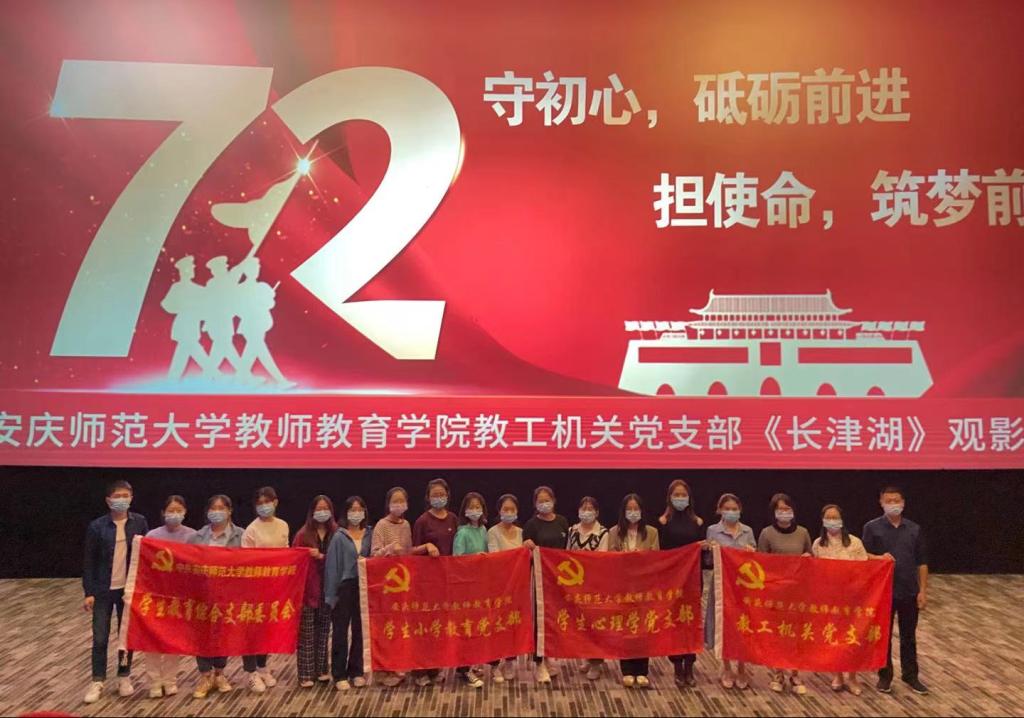 10月9日,我院教工机关党支部组织了“守初心,砥砺前进 担使命,筑梦前行”主题观影活动。教工机关党支部11名教师党员,与学生教育综合党支部、学生小学教育党支部、学生心理学党支部等12名学生党员共同观看了《长津湖》影片。