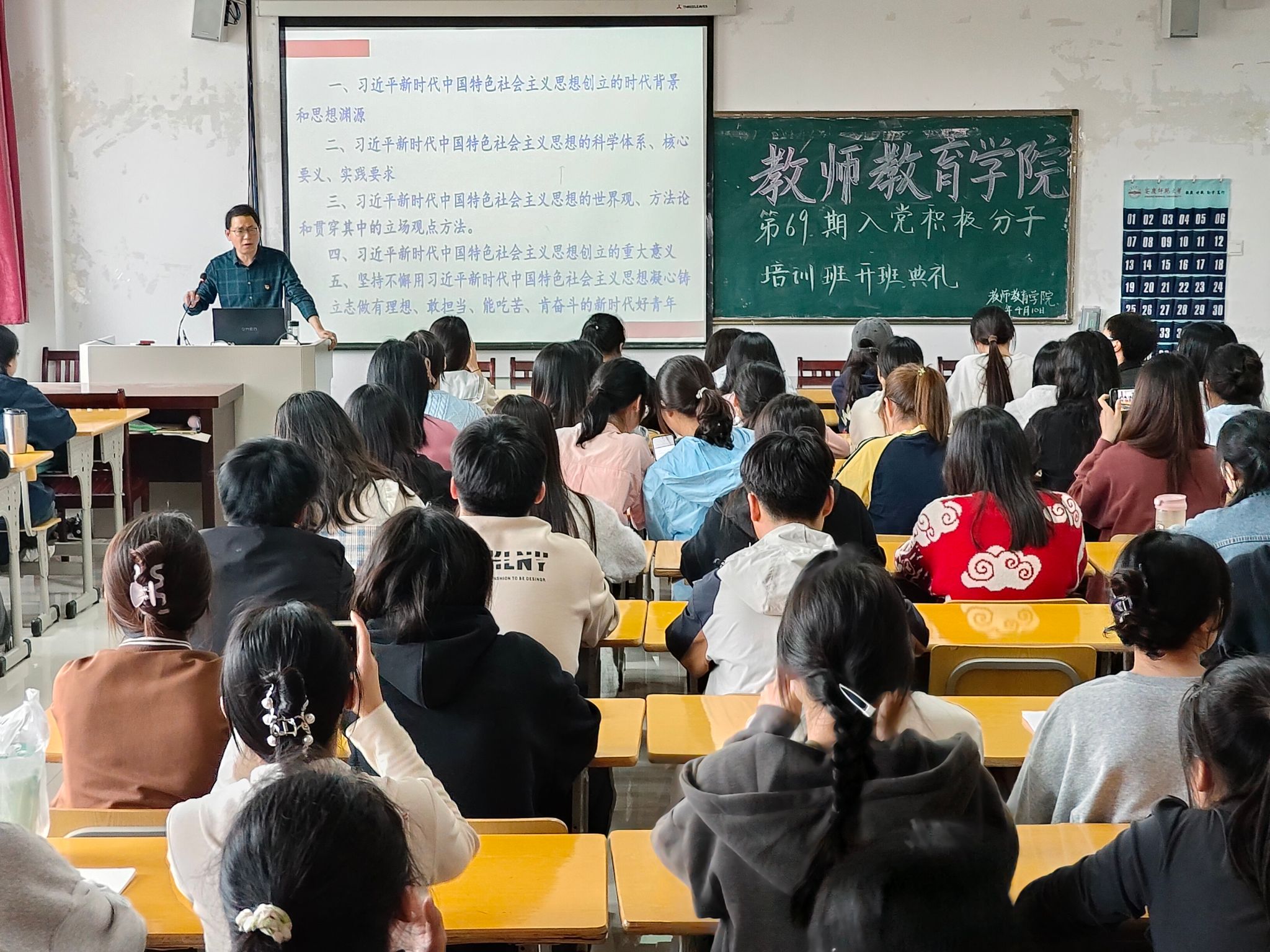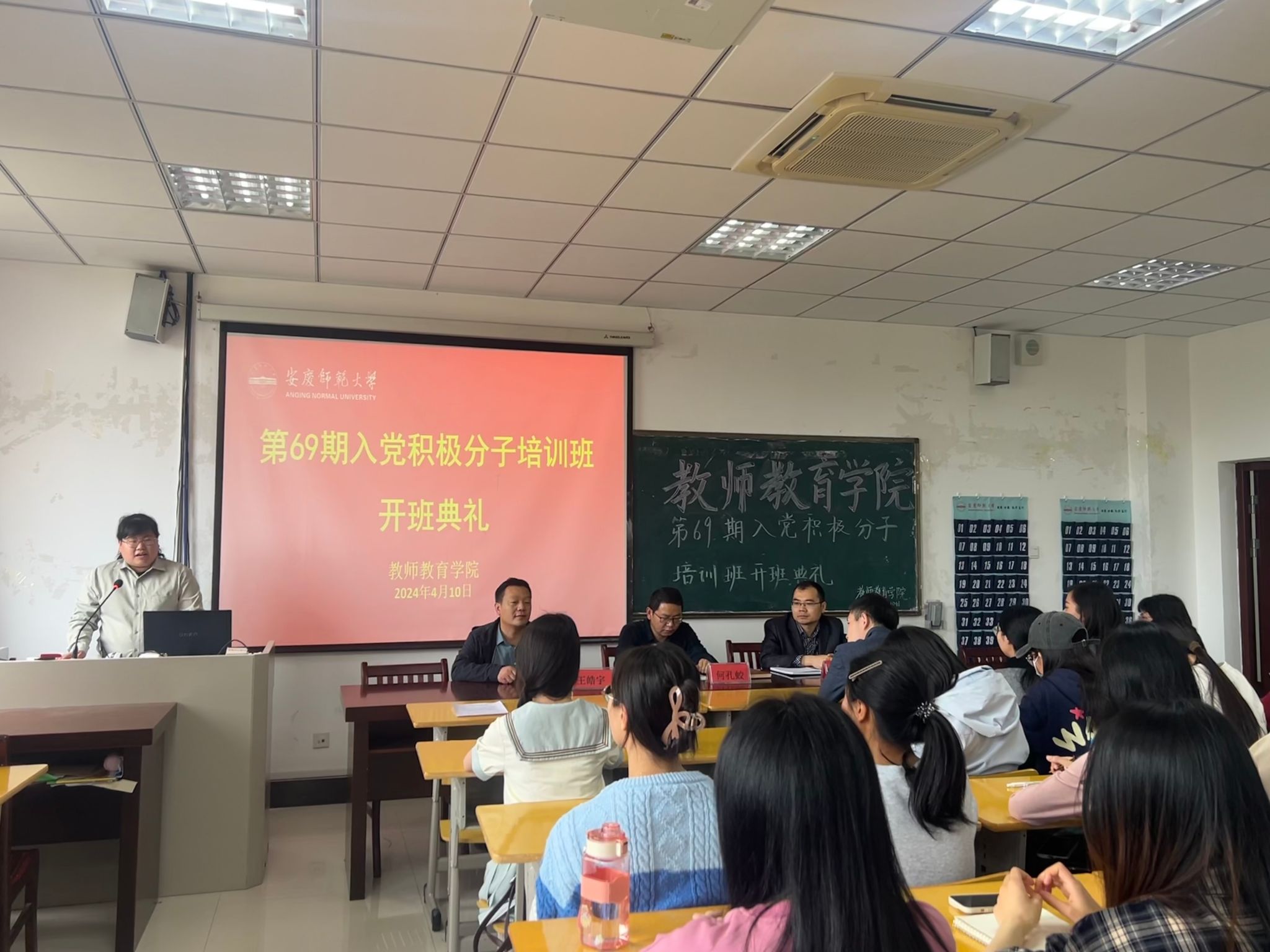 4月10日,我院第69期入党积极分子培训班开班典礼在J305教室举行。学院党委书记何孔蛟,副院长陈效飞、王皓宇,各学生党支部书记及第69期入党积极分子参加,培训班班主任汪悦主持开班典礼。