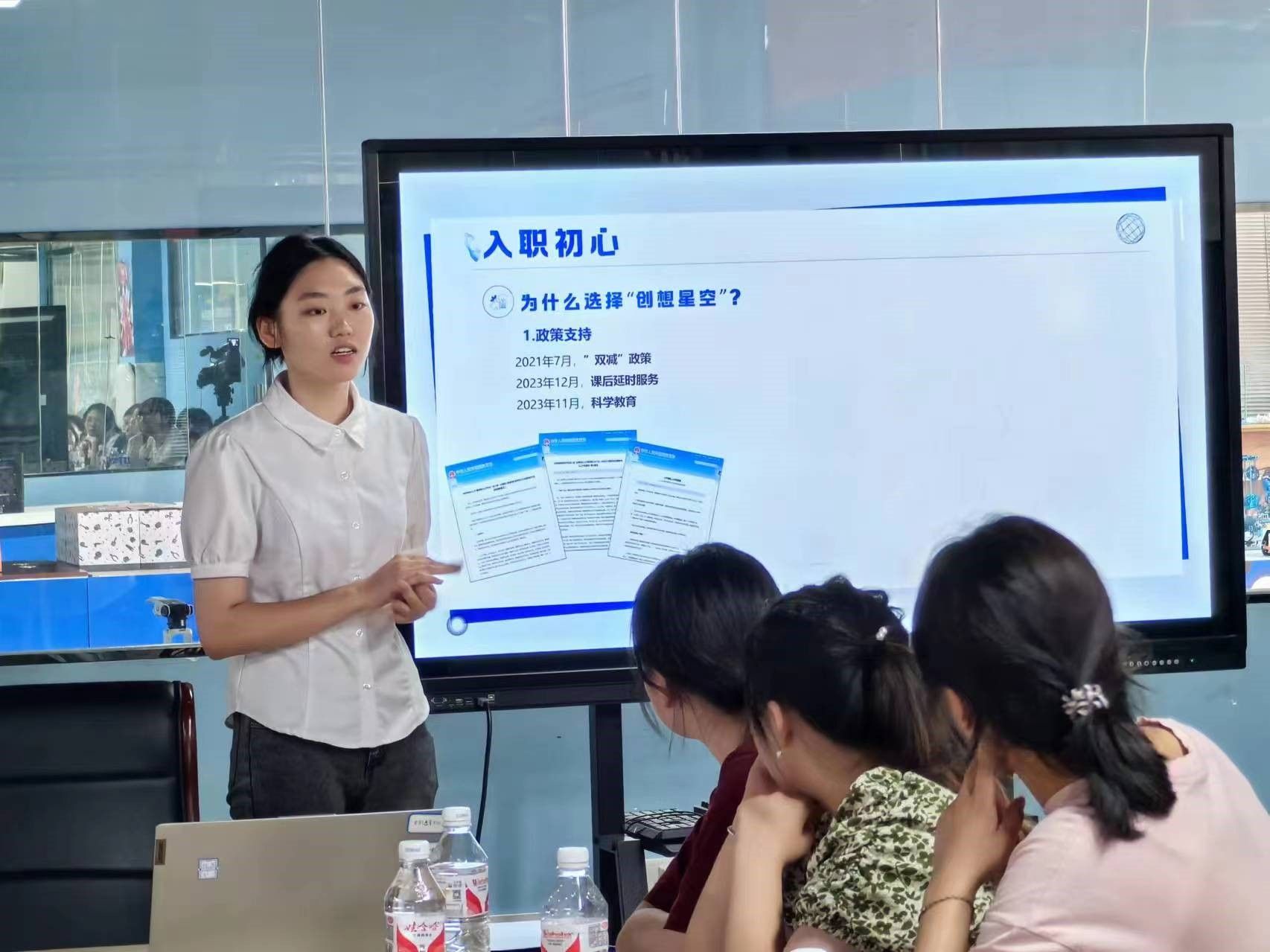 随后,公司安排专人介绍了国家当前人工智能和创客教育背景,安徽省、安庆市创客教育市场的发展与前景,以及公司发展规划。教育技术学专业毕业生吴少洁目前供职于该公司,也向大家分享了求职经历和入职以来的心得体会。最后,教育技术学教研室党支部书记作总结发言,认为了解创客教育、学习创客教育、掌握创客教育是教育技术学专业学生教师职业发展的需要、实践能力培养的需要以及个人价值体现的需要,鼓励和建议学生积极参与实践,在实践中成长、蜕变,不断向中小学卓越信息技术教师的培养目标逐渐迈进。