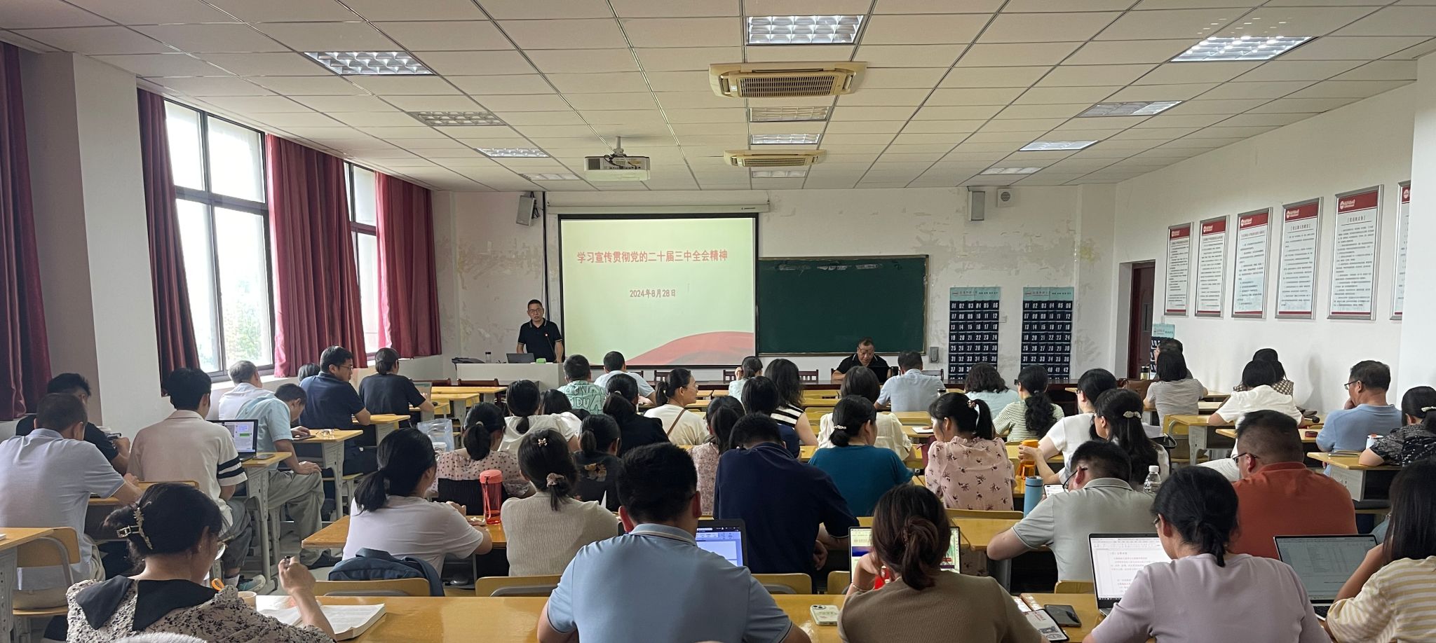 8月28日下午,教师教育学院在J305教室召开全体教职工会议。学院党委书记何孔蛟作学习贯彻党的二十届三中全会精神宣讲报告。