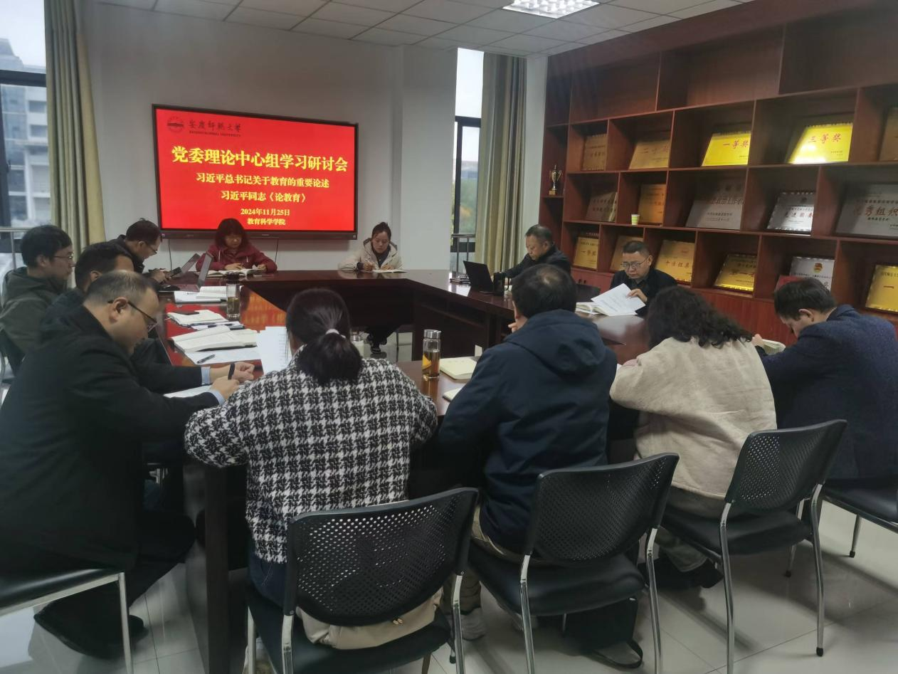 11月25日下午,我院召开党委理论学习中心组研讨会,深入学习贯彻习近平总书记关于教育的重要论述,认真学习习近平同志《论教育》。院党委书记何孔蛟主持学习研讨会,党委理论学习中心组全体成员、各党支部书记参加会议。