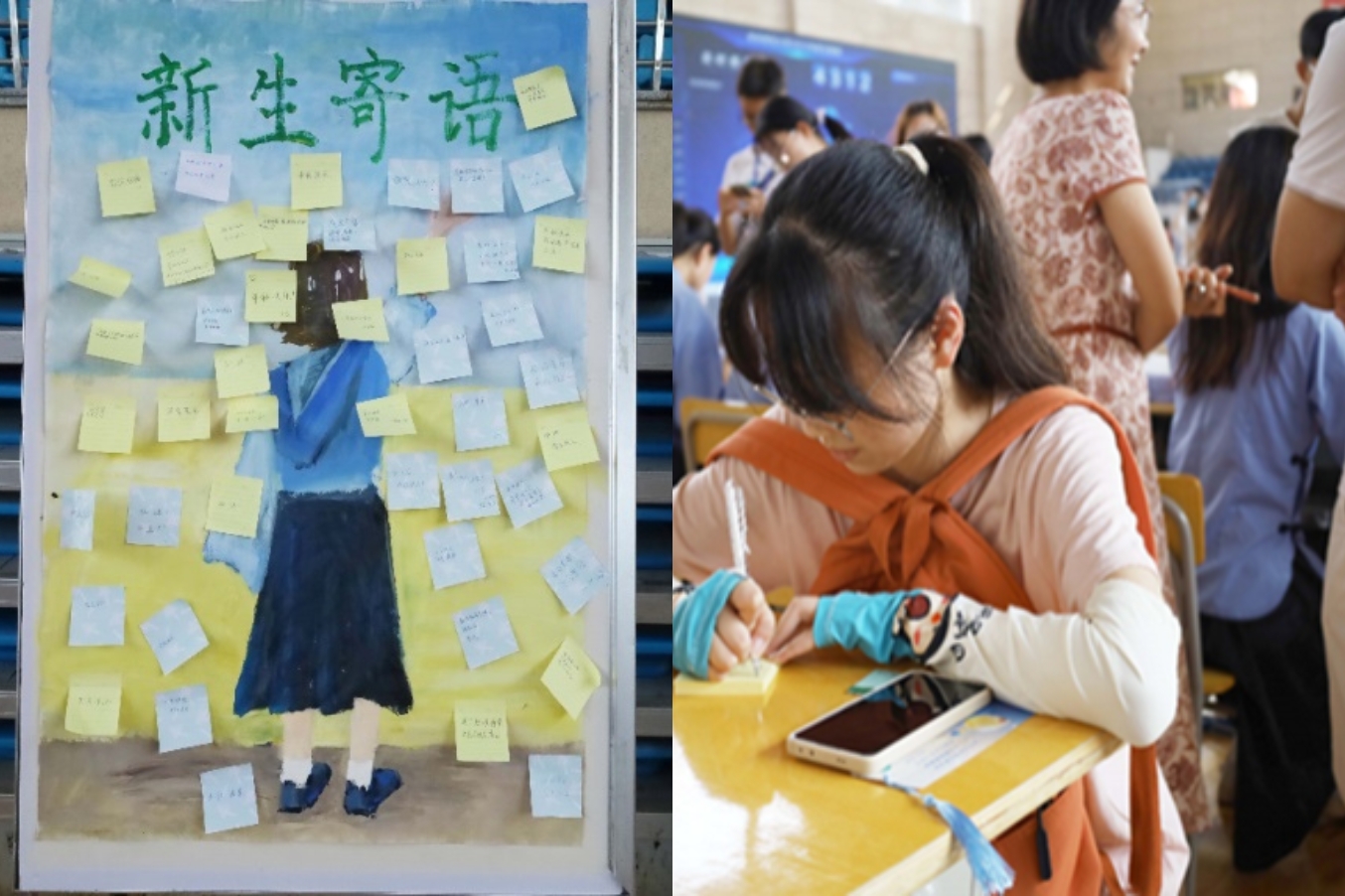 据学院团委负责教师介绍,此次迎新,学院为新生们准备了印有学院院徽的及教师节、中秋节元素的“节日限定”书签,书签背面印有学院简介,新生们手持书签,在“新生寄语”的背景板上留下自己大学的第一抹印迹。“希望能够带给新生们一次特殊的入学体验,让他们在今后的大学生活中能铭记自己的初心,不断突破自己。”姚强诚说。
