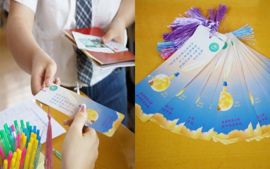 此次迎新,学院为新生们准备了印有学院院徽的及教师节、中秋节元素的“节日限定”书签,书签背面印有学院简介,新生们手持书签,在“新生寄语”的背景板上留下自己大学的第一抹印迹。“希望能够带给新生们一次特殊的入学体验,让他们在今后的大学生活中能铭记自己的初心,不断突破自己。”学院团学负责人姚强诚说。
