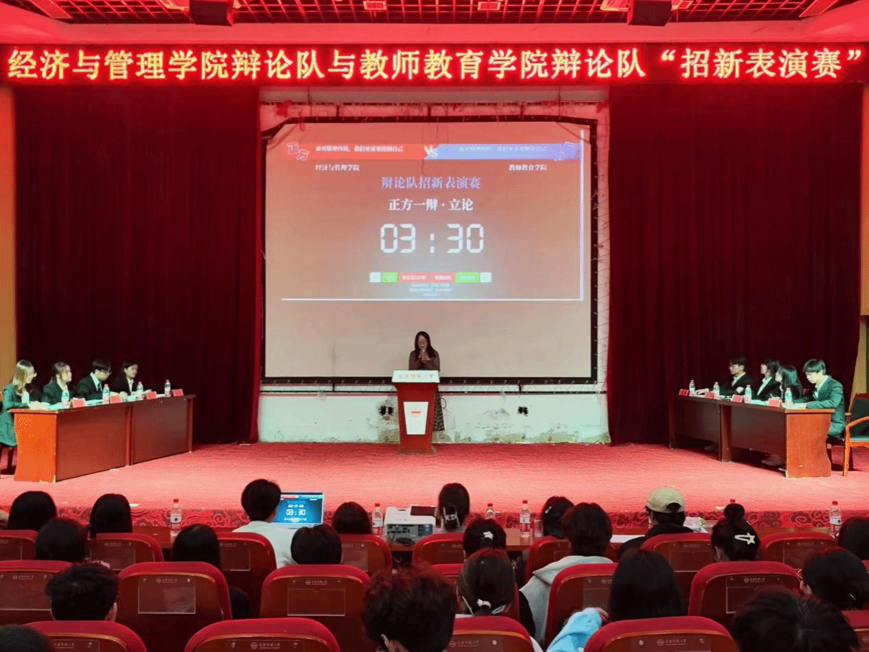 9月23日,我院与经济与管理学院辩论队联合在图书馆东报告厅开展“招新表演赛”,学院辩论队领队俞燕、徐姜明、赵理想、陆文慧等参加本次活动。