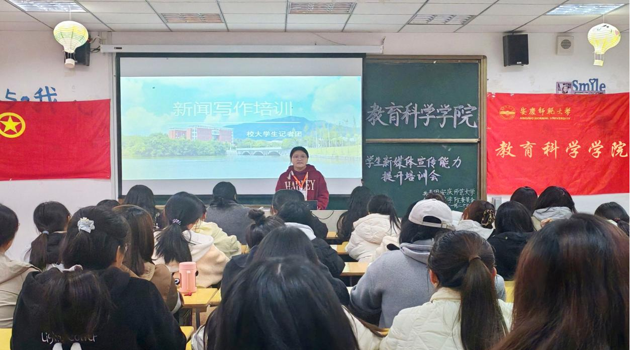 培训会上,赵晨阳从认识新闻、新闻采访、新闻写作等三个方面,条理清晰地讲解撰写新闻的方法,引导学生走近新闻,明晰采访流程,明确新闻关键点。其中,赵晨阳以学校毕业“寄”行李活动为例,具体介绍如何拟写采访提纲,为在场学生解惑释疑。介绍新闻写作标题要写好、导语要出彩、结构要合理,遣词造句避免出现口语化、绝对化的问题。