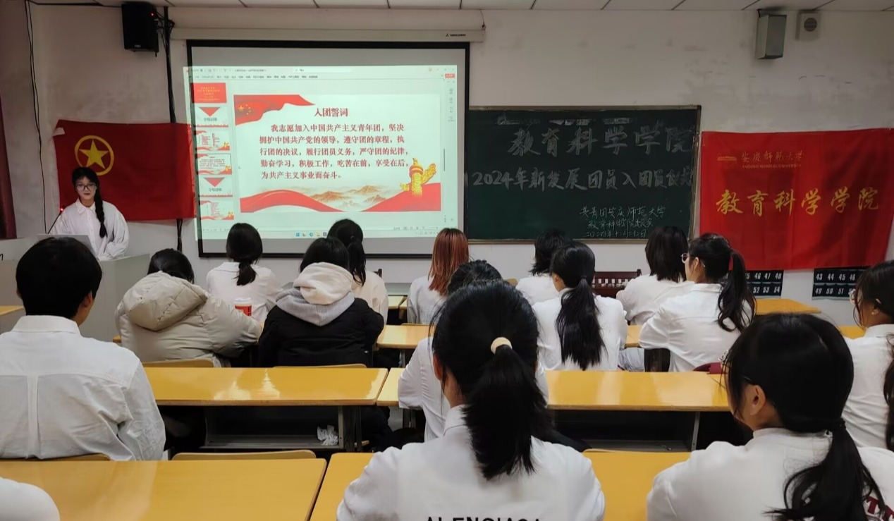 12月22日,我院于J305教室举行2024年新发展团员入团仪式。活动由院团委实践委员余苏慧主持,院团委副书记姚强诚及全体新发展团员参会。
