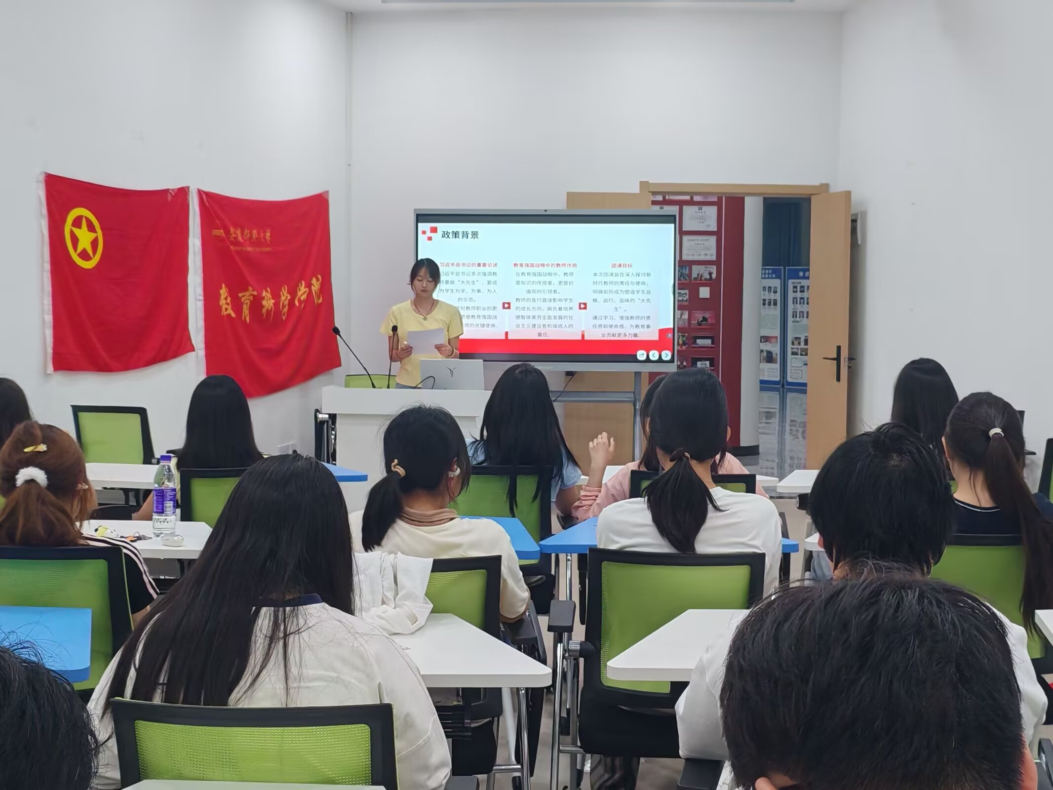 5月18日,我院于一站式学生社区美育活动室2举办《论教育》—“教师要成为塑造学生品格品行品味的大先生”主题团课。活动由院团委实践委员刘筱羽主持,我院学子积极参加。