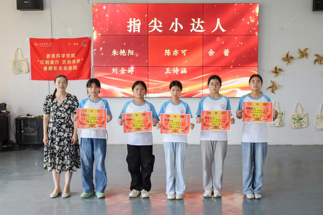 最后的夏令营成果汇报表演节目类型多样、内容丰富励志:歌曲《稻香》展现积极向上的生命哲理,诗朗诵《月光下的中国》饱含家国情感,情景剧《禾下乘凉梦》尽显科学、劳动之美……孙小淇、崔赵薇、俞成敏等实践团成员在《唱支山歌给党听》的每个动作中倾注对党和国家的热爱。“舞蹈结合红色革命文化的形式能让营员从歌词中汲取奋进力量。高校青年的专业素养与乡村孩子们的纯真心灵碰撞出的是相互促进,教学相长的火花。”团队负责人、学前教育专业2024级研究生崔赵薇表示。