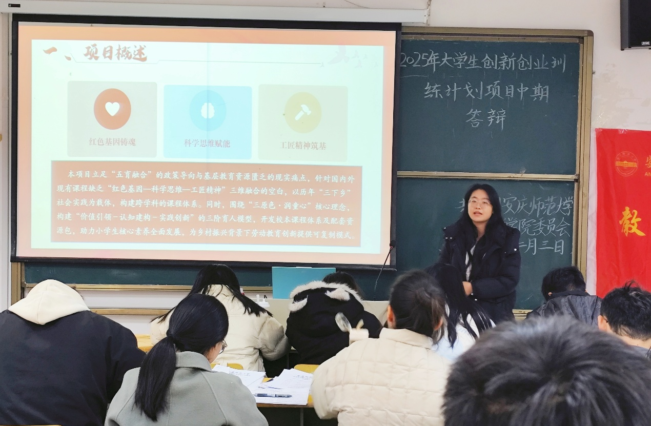 12月3日,我院在J221教室开展2025年大学生创新创业训练计划项目中期答辩。学院副院长王皓宇、院团委副书记姚强诚,专职辅导员后娇娇及研究生程文彦、赵理想担任评委,院团委实践委员瞿倪主持。全院共14支项目组团队参与汇报。