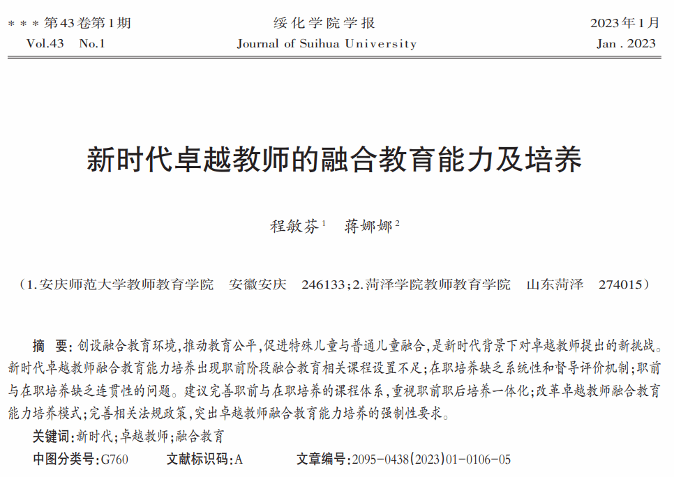 程敏芬蒋娜娜新时代卓越教师的融合教育能力及培养