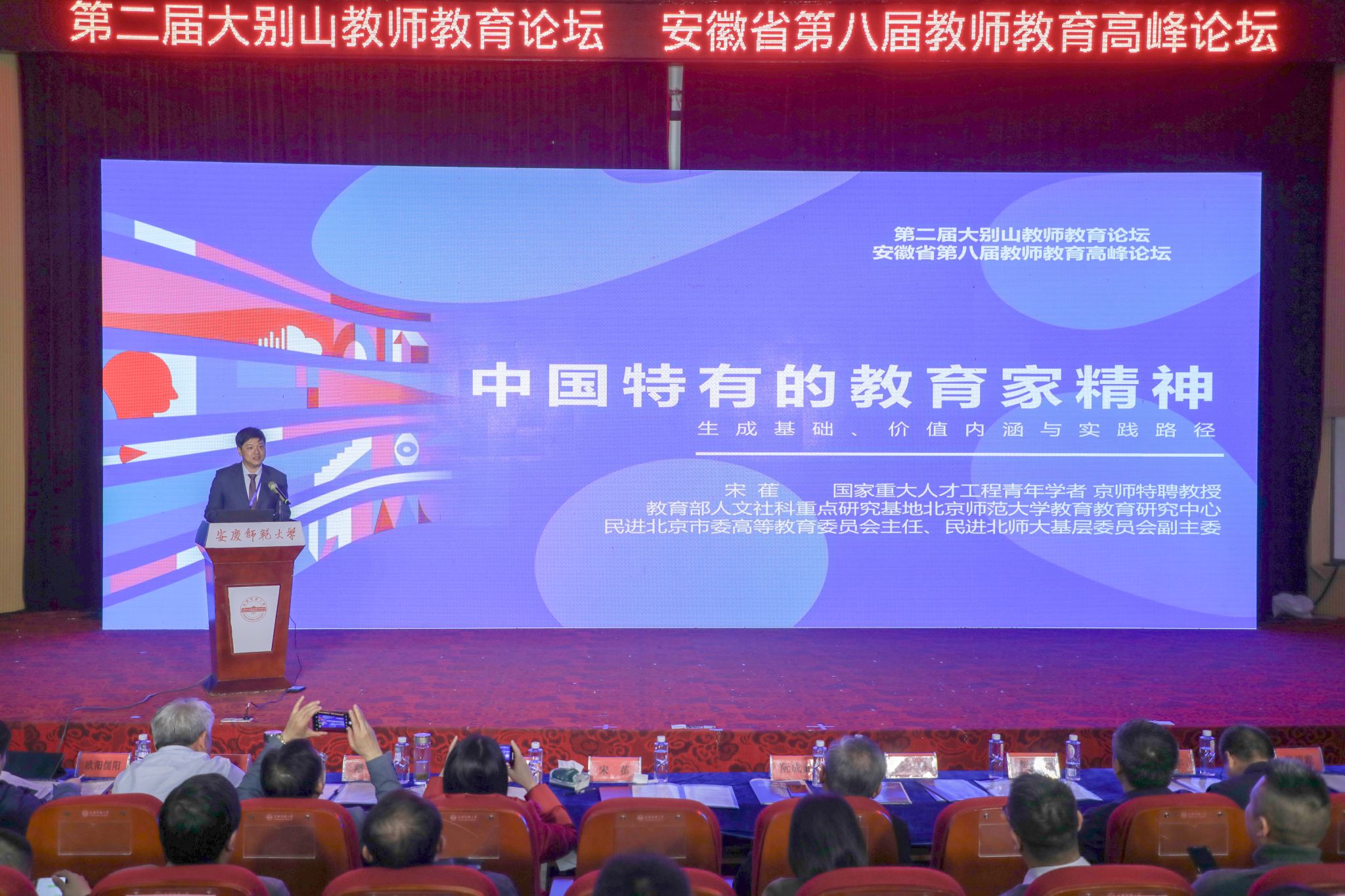 教育部普通高校人文社会科学重点研究基地北京师范大学教师教育研究中心副主任宋萑、安徽省教师教育协同创新中心主任阮成武在开幕式上分别致辞,他们对论坛的召开表示热烈祝贺,表示将会与安徽省各高校持续深入合作,共同培养“学得好、有专长,下得去、留得住,教得好、有发展”的“红色园丁”。